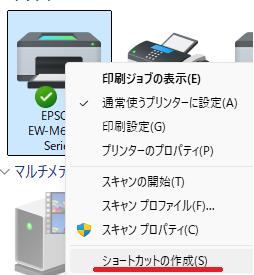 選択したプリンターから「その他のデバイスとプリンターの設定」を選択します。